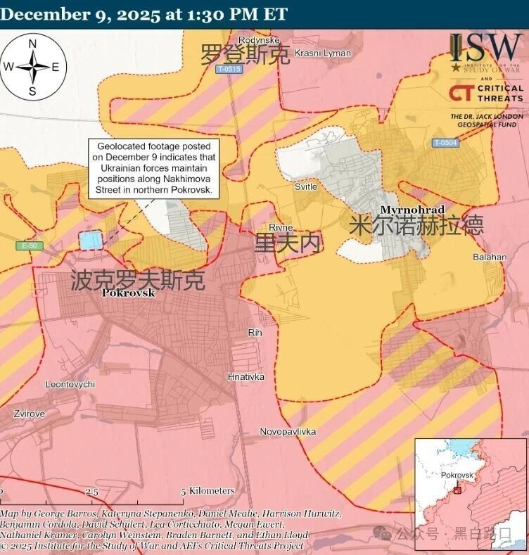 战争研究所(ISW)12月10日地图展示波克罗夫斯克-米尔诺赫拉德近况,该方向局势严峻,乌军尽可能坚守,并持续给俄军造成损失。
