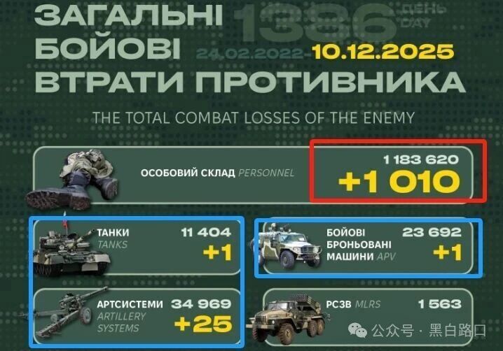 过去24小时,前线爆发177次战斗,俄军损失新增1010人,代价继续走高。