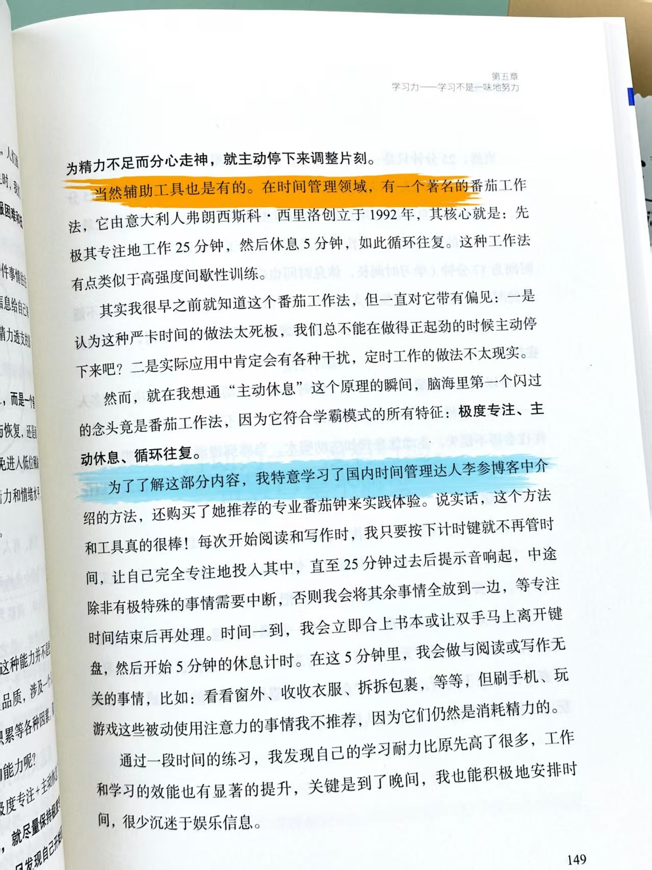 一个简单又通用的方法正是前文说的主动培养“极度专注+主动休息的行为模式。具体的做法就是:只要开始学习或工作,就尽量保持极度专注的状态,哪怕保持专注的时间很短也是有意义的;一旦发现自己开始因精力不足而分心走神,就主动停下来调整片刻。"