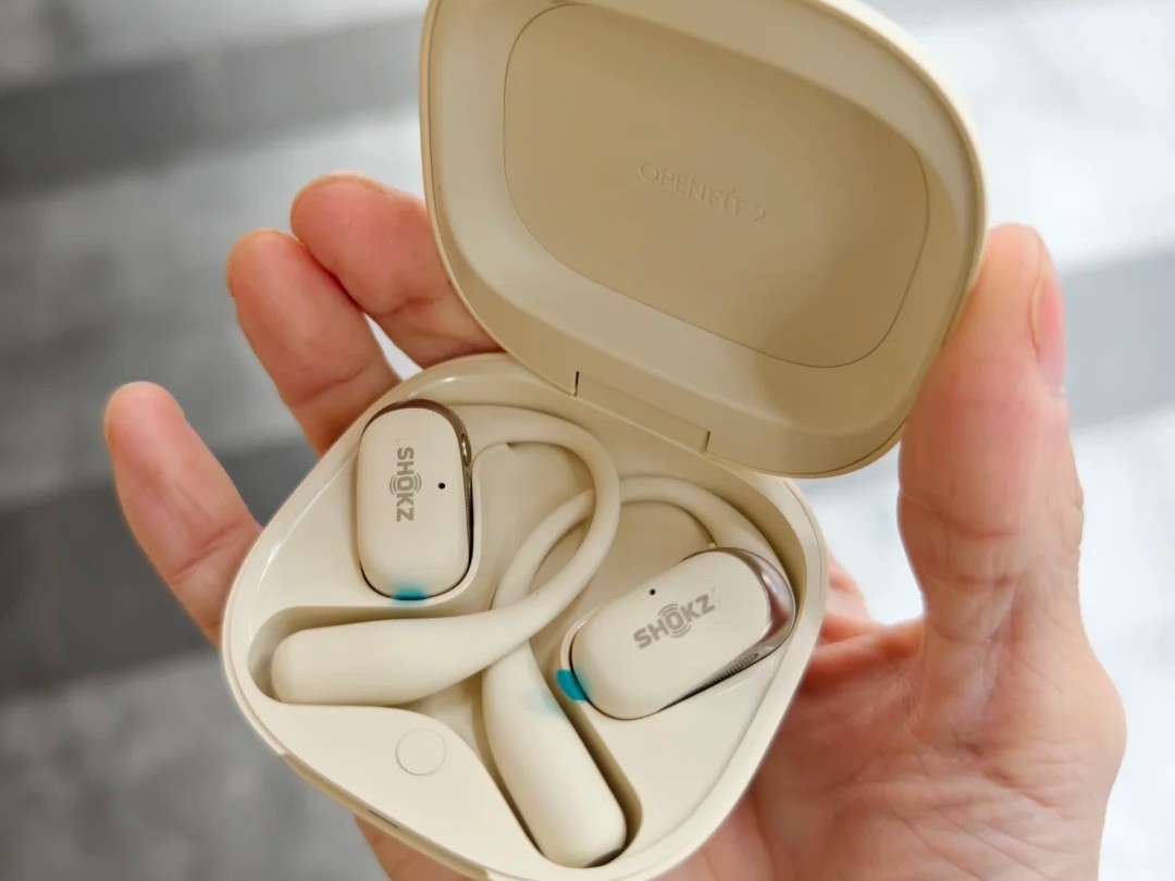佩戴方面:为了让发声单元离耳道更近,韶音OpenFit 2采用了27.5°黄金夹角设计,搭配液态硅胶和超高弹记忆金属钛丝,材质亲肤且能贴合耳型,佩戴稳固又舒适。