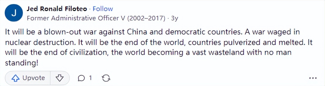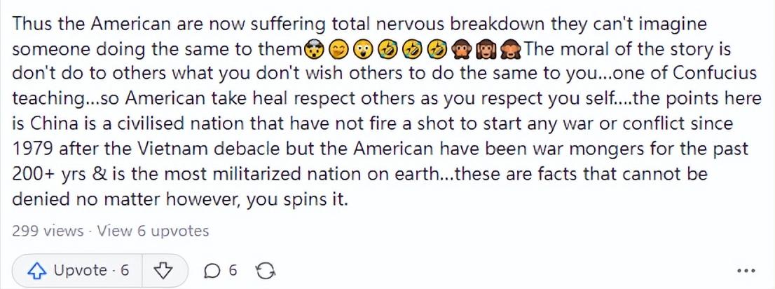 一位新西兰网民评论称,这或将引发一场波及中国的全球性冲突,其激烈程度可能达到核级毁灭,预示着世界的终结,届时无论美国还是中国都将遭受重大损失。