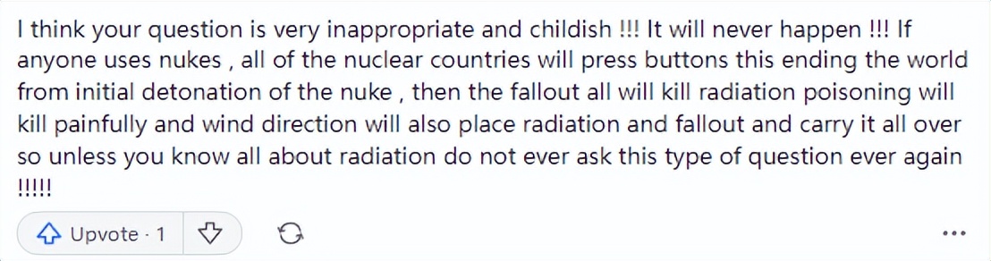 随后,一位来自土耳其的网友评论指出,这一问题的答案或许遵循着那句古老的格言——“以眼还眼”。美国的核战略主张侧重于等价力量投射与报复,本质上旨在构成威慑。
