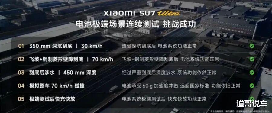 当然,新能源汽车起火这种事,有时候不能全赖车企,因为有“极端情况”。在第131集的小米汽车答网友问中,中汽研给小米SU7 Ultra做的电池极端场景测试中有个场景,与此次事故相关:“模拟碰撞模拟了车辆高速撞墙、加速度超过60g时,电池所需要承受的巨大能量冲击”。