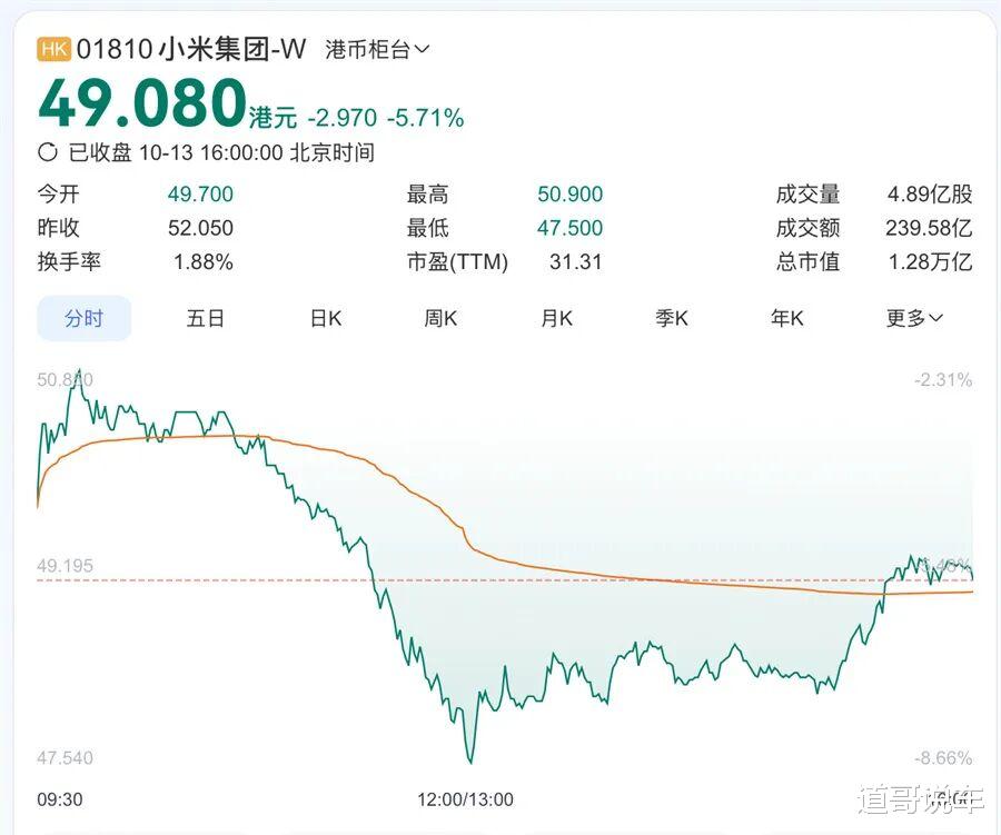 值得关注的是,小米集团股价当日出现大幅度波动,一度暴跌近8%,截至收盘,股价跌5.71%,报49.08港元/股。小米集团的股价变动,也被解读为资本市场对其“安全危机”的直接反应。