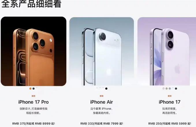 很多人可能会想:是不是所有型号都能享受?答案很遗憾,并不是。国家的消费补贴政策有明确要求,单件商品售价必须在6000元以内。iPhone17标准版256GB恰好踩在这个门槛上,减掉500元补贴后,最终价格才显得格外诱人。而其他系列,比如定位更高端的Pro起售价8999元,轻薄款Air起售价7999元,甚至是标准版更高存储的版本,都超出了这个“红线”,自然和补贴无缘。也正因为如此,这一次的机会显得更稀缺。