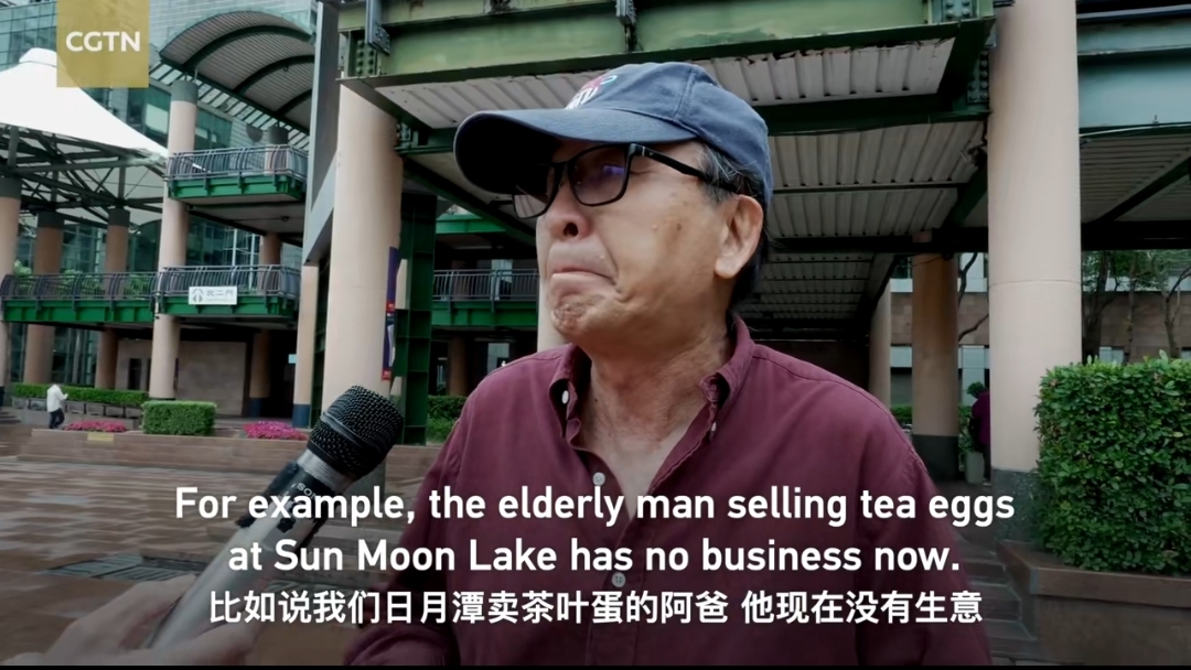一位大叔提到了日月潭卖茶叶蛋的阿爸,他说大陆游客减少后,茶叶蛋的生意也不好了,他反问:为什么以前不是这样的?