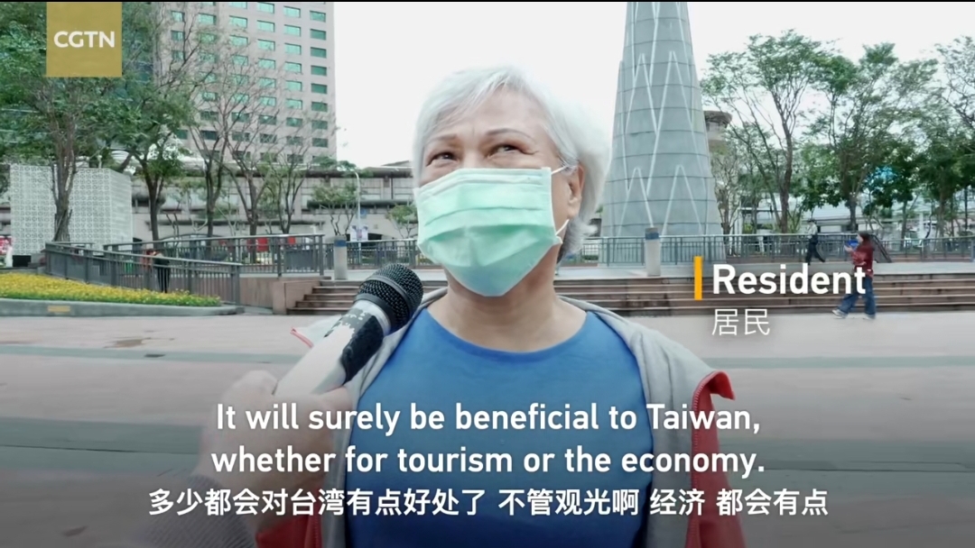 几位接受采访的台湾老百姓都认为合作会给台湾带来实实在在的好处,比如经济和观光等等。