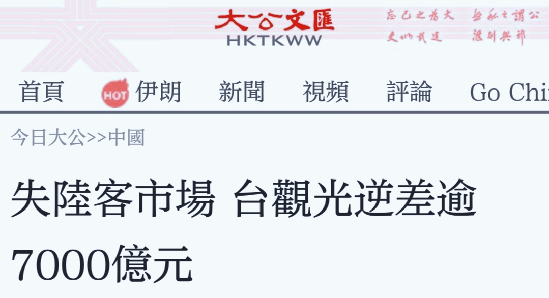 今年1月,大公文汇网就曾刊登专门文章,透露“失去陆客市场,台观光逆差逾7000亿元”。