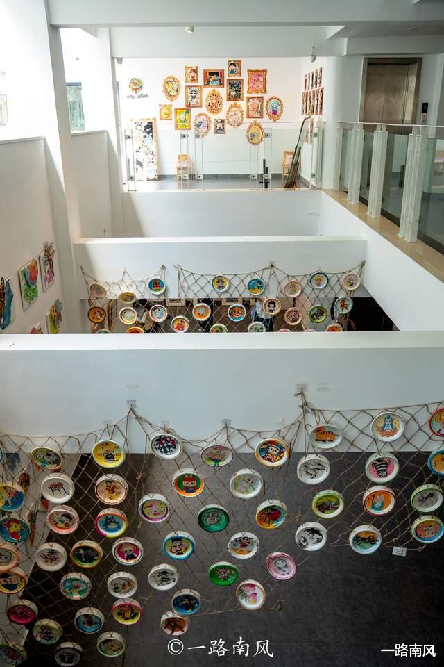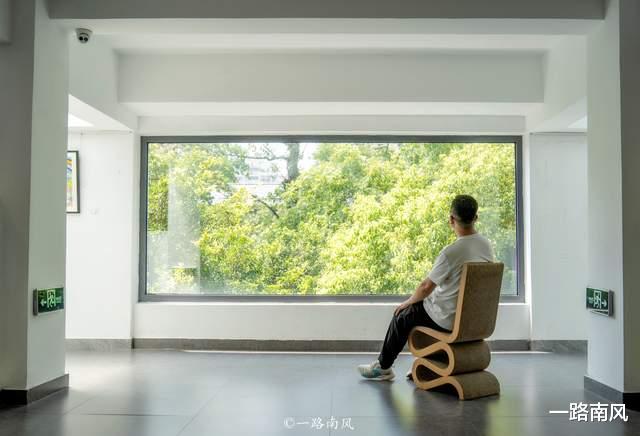 置身于温州美术馆这座线条优美的建筑中,可以观赏到各种创意美术作品。二楼以上,每层都布置有经典观景机位,三楼落地窗机位的拍照效果最为出众。