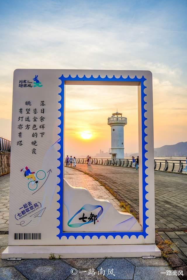 网红景观“灯塔斜阳”位于七都岛的西北岛尖。夕阳下,灯塔与瓯江两岸景色交相辉映,瑰丽、浪漫、梦幻。在江堤上随意漫步,悠然骑行,感觉自己就像自由自在的小鸟。