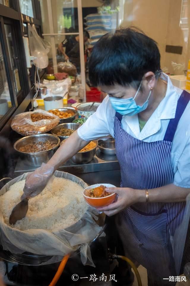 娟娟早点店:糯米饭加入切碎的软油条,淋上香菇肉汤,温州人的至爱