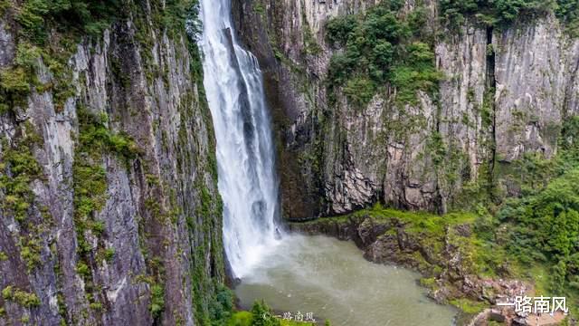 乘坐电梯来到峡谷,自高处至低处游览可以节省体力。百丈漈瀑布以三折之姿,沿山势层层叠叠跌落分布,颇有气吞山河之势。这里涧长1200米,落差353米,2013年经上海大世界基尼斯总部确认为“中国单体落差最高的瀑布”,同时也是“浙南第一高瀑布”,并入选“中国十大名瀑”。