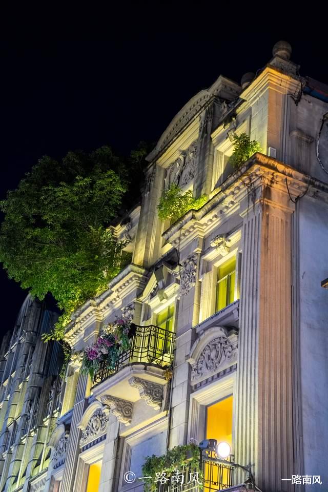 街上民国风情建筑大量留存。入夜后的五马街瑰丽梦幻,更添市井风韵,是温州的夜景天花板之一。街区中部的五匹马雕塑是经典打卡机位。