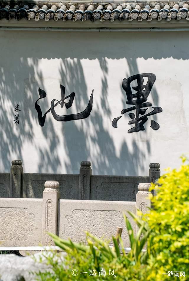 拍照机位推荐:公园门前的“墨池”墙,公园内的“墨池”墙。