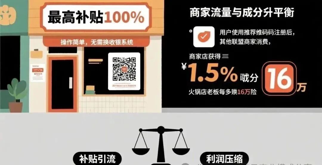 用户通过商家专属推荐码消费后,商家可永久获得其后续消费的分佣(通常为1%-5%),实现“睡后收入”;