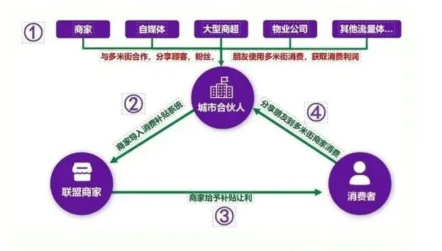 一、商业逻辑多米街商业模式的核心可以概括为两大步骤:用商家让利构建资金池,再依靠AI算法实现动态分配。