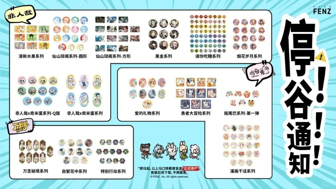 64柄图、38mm的“请你吃糖”系列迷你吧唧,同样是10元的亲民价,社交媒体上消费者的买家秀,以及后续官方发布的《停谷通知》都堪称“销冠”。