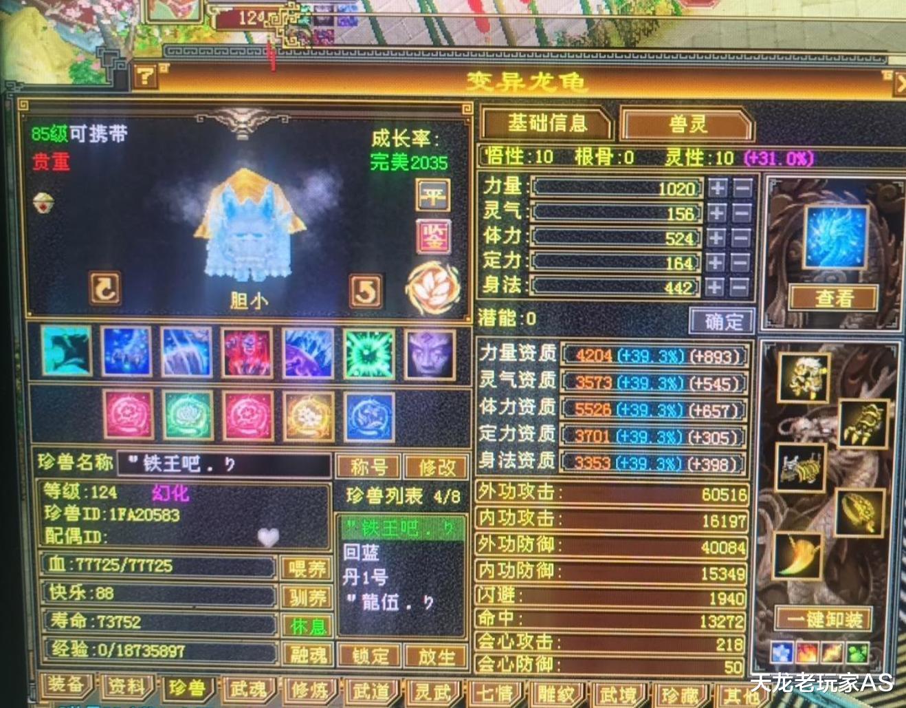 小编目前见过资质最高的龙龟就是这只胆小完美的了,双十资质达到4869!