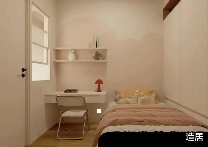 次卧遇上“暗间”就很容易被浪费沦为储物间。要改善,可以在次卧紧邻客厅的条件下,开一扇窗,白天次卧借客厅光线省去开灯,夜晚次卧灯光透过玻璃为客厅增添温馨氛围。