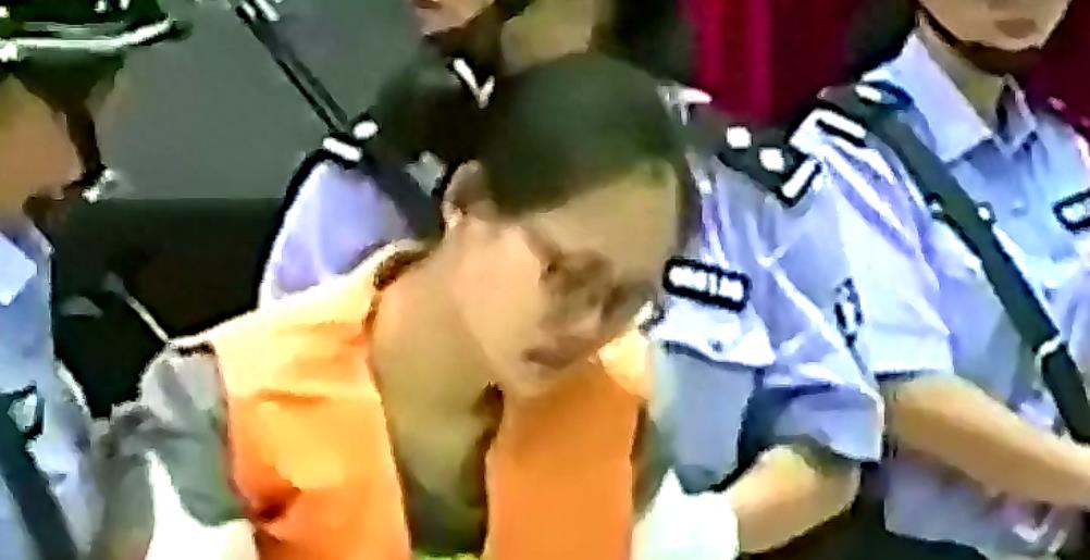 一开始被押到台上时,她还表现得很镇定,可能是对自己的行为感到羞愧,面对着台下的众人,她一直低着头。听到法官开始宣判,她终于忍不住抬起头来,神情中充满了紧张和希望,显然结果远超她的想象。