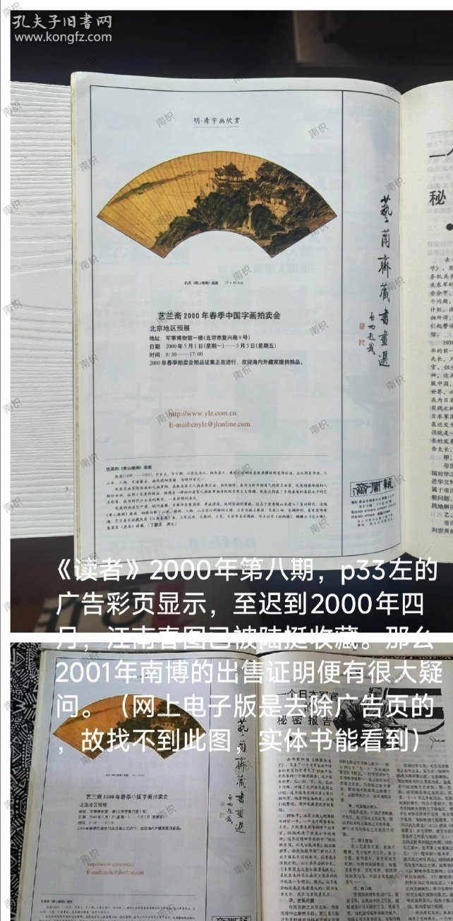 2000年,《读者》杂志某一栏里白纸黑字写着:明代仇英《江南春》图卷,现藏于艺兰斋。