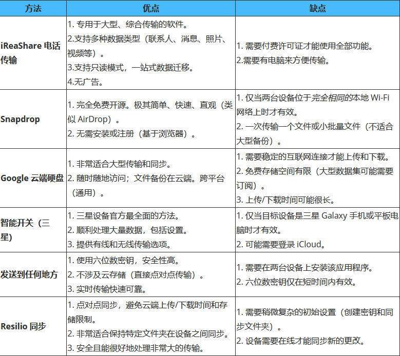 选择最适合您的数据量和您正在使用的 Android 设备类型的选项,以实现成功、无压力的过渡。