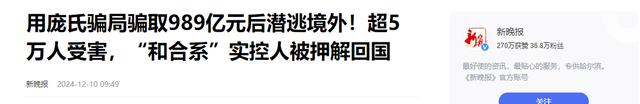 新晚报《用庞氏骗局骗取989亿元后潜逃境外!超5万人受害,“和合系”实控人被押解回国》