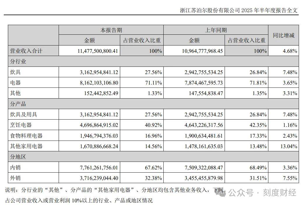外销业务为苏泊尔提供了基本盘,但也构成了其最显著的脆弱性。2025年上半年,公司外销营收达37.16亿元,同比增长7.55%,这份增长仰赖于大股东及其附属公司的订单输送。