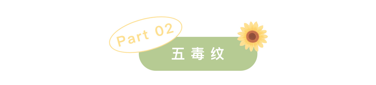 除了花卉,清代衣物上还有一种现代比较少见的纹样——五毒纹。五毒是蛇、蝎子、蜈蚣、蟾蜍、壁虎五种有毒性的动物的统称。五毒图案最早在战国时期,就已经出现在中国人的习俗中。古代人认为端午节一到,由于天气变热,各种毒物就会出现,因此通过贴带有“五毒”图案的图画,来驱邪避毒。