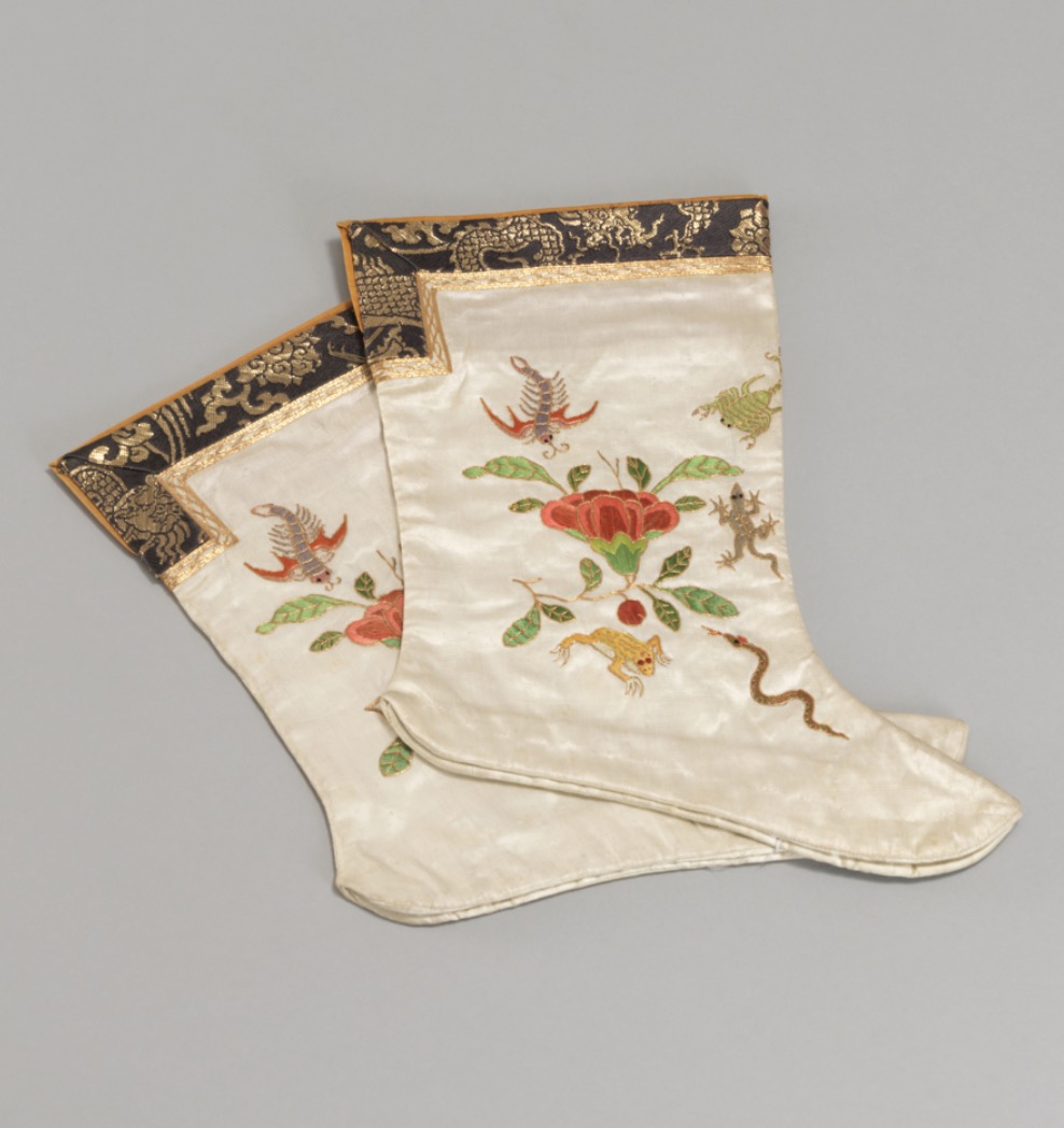 白色绫绣五毒纹短腰夹袜 图片来源:故宫博物院官网