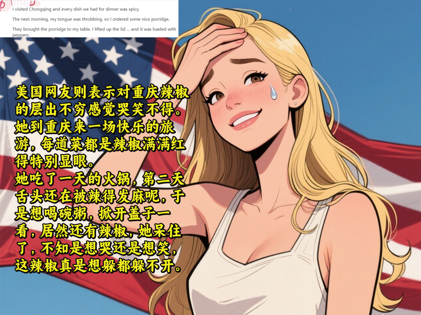 ❗️美国网友说,对重庆的火辣食物,她觉得挺好奇。