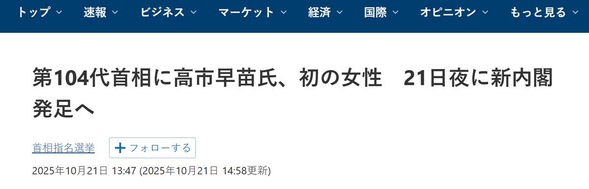 【高市早苗在众议院选举中获得237票,当选为日本第104任首相】