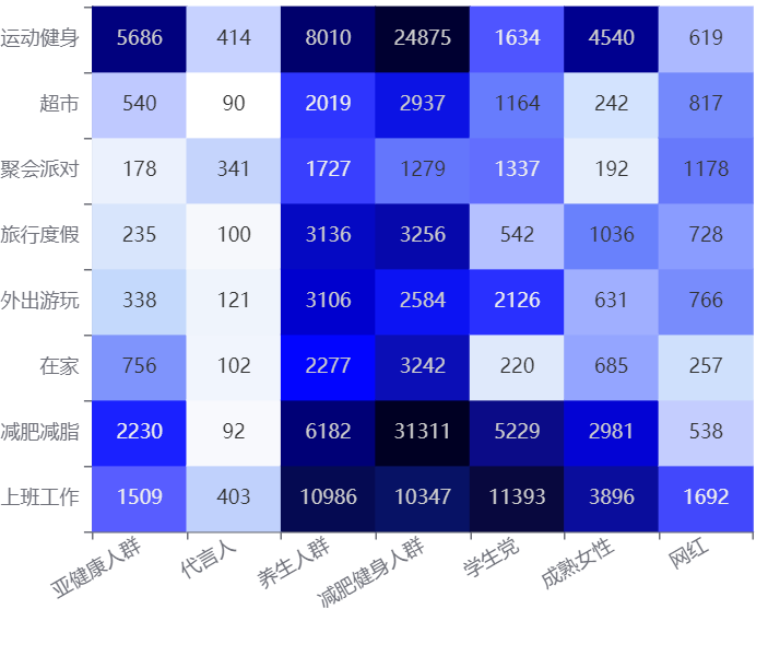养生人群在运动健身、上班工作场景声量较高,体现出将养生理念融入日常生活的现象。成熟女性在上班工作、运动健身等场景存在较高声量。整体而言,健康果汁类饮品在运动、办公等高频场景及养生、减肥等目标人群中拥有较高热度。