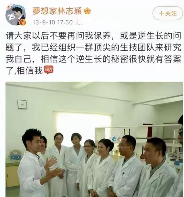 除了这个活广告之外,还表示自己还有一个很强的“科研团队”,看样子也是非常的专业,林志颖在一群研究人员中间,看起来更加现眼了,有这么一个活招牌在,当时有不少人都入坑了。