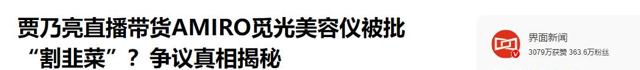 界面新闻——《贾乃亮直播带货AMIRO觅光美容仪被批“割韭菜”?争议真相揭秘》2023-11-6