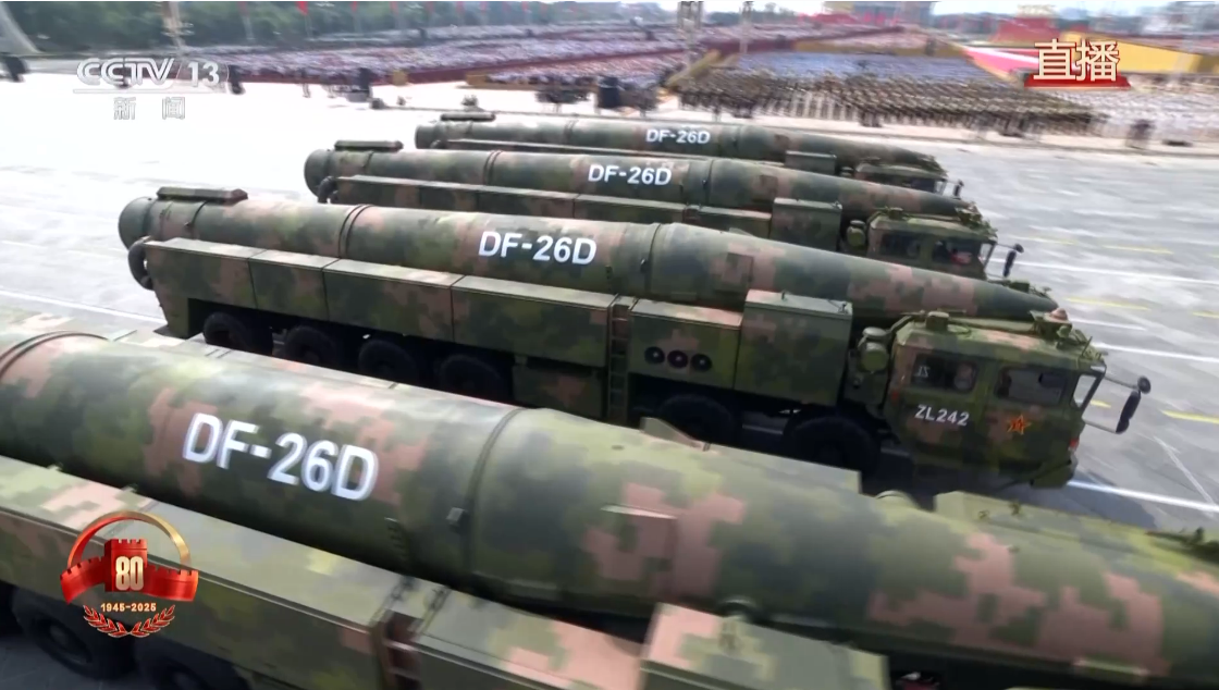 DF-26D高超音速导弹:九三大阅兵中亮相,近日疑似进行了发射测试,外媒称其为“关岛杀手”
