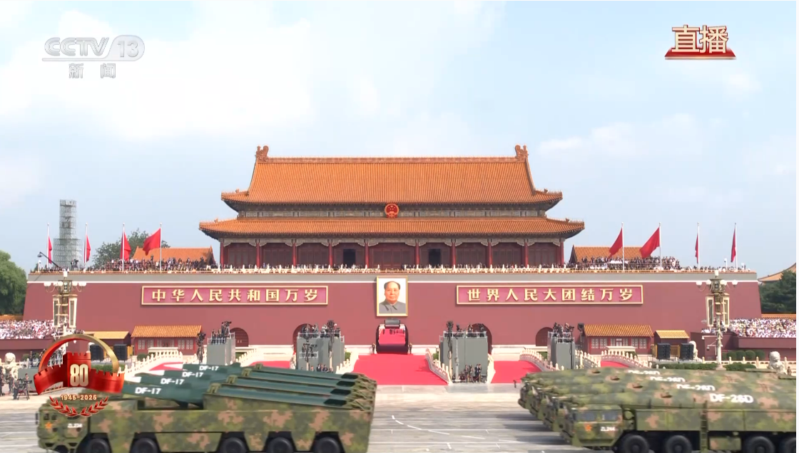 在九三大阅兵中,DF-26D在高超音速导弹方阵中公开亮相,是排在YJ-21(鹰击-21)、DF-7(东风-17)以后,作为方阵的压轴装备展示的。