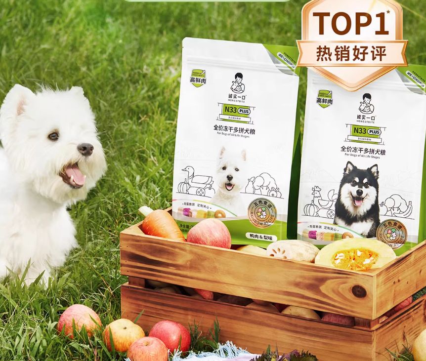 形态设计:根据犬只体型区分颗粒大小,适配不同狗狗咀嚼吞咽,部分款式添加冻干颗粒或设有夹心,在形态上更易吸引狗狗注意。适口表现:开袋能闻到自然的肉香与食材本味,无明显人工异味,搭配的冻干成分提升了风味层次,对多数狗狗有一定吸引力。