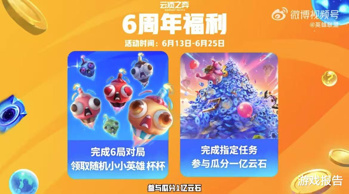 近期,云顶之弈迎来了六周年,这次周年庆上线完成指定任务可以免费领取小小英雄杯杯、白嫖福利召唤60连,这些福利想必大家已经揣兜里了吧,还有抢先完成对局后的瓜分1亿云石的奖励也千万不要错过。