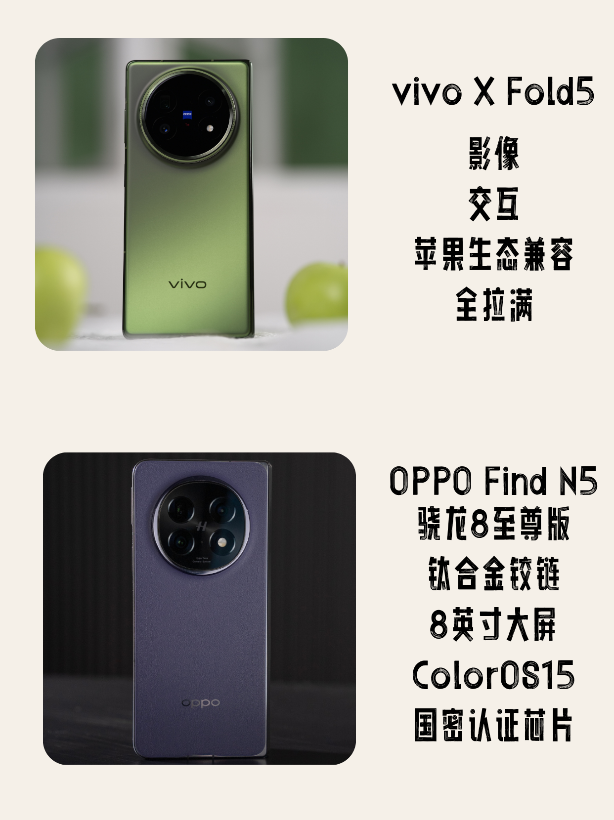 别说明年就说今年,年初OPPO Find N5和最近的vivo X Fold5,产品力就已经很强。vivo X Fold5影像、电池、软件交互、兼容苹果生态 ,除了骁龙8 Gen3有些许遗憾,其他都很强。🚀