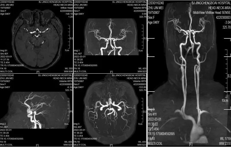 MRA是一种无创、无辐射、简便经济、精准的脑血管筛查方法,相较脑血管CT三维重建(CTA)和脑血管造影(DSA)则需要注射造影剂,在X射线下辅助完成检查,二者只在进一步确诊脑血管疾病时考虑使用。