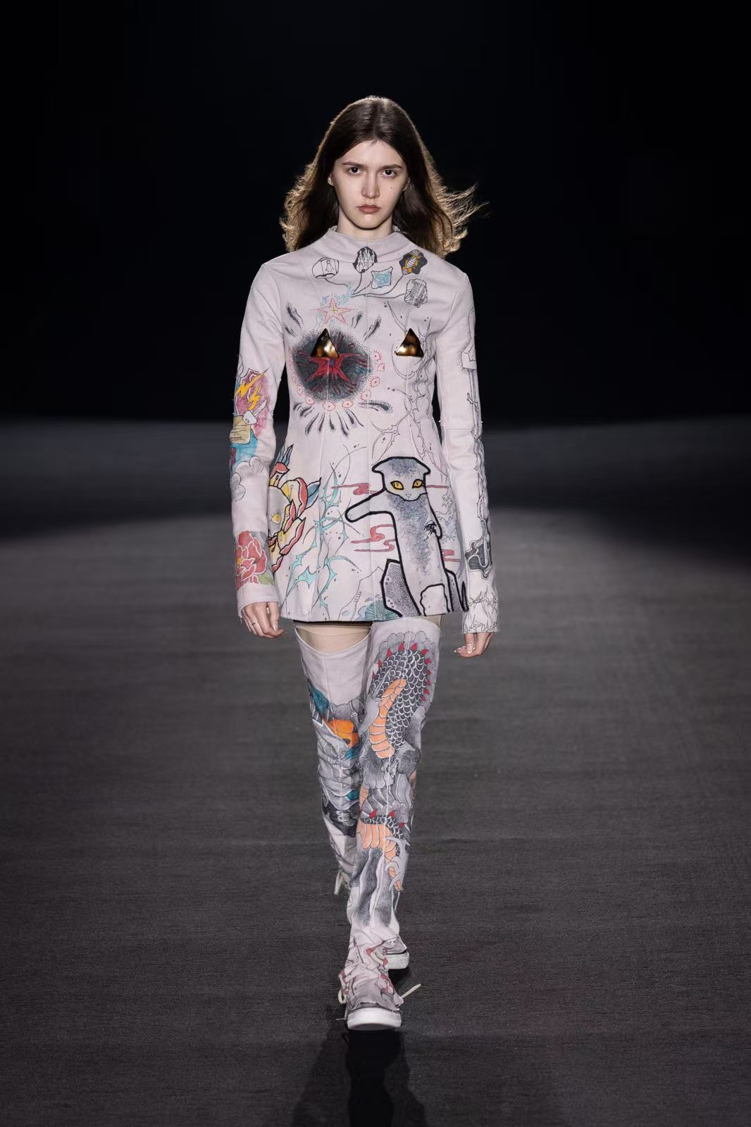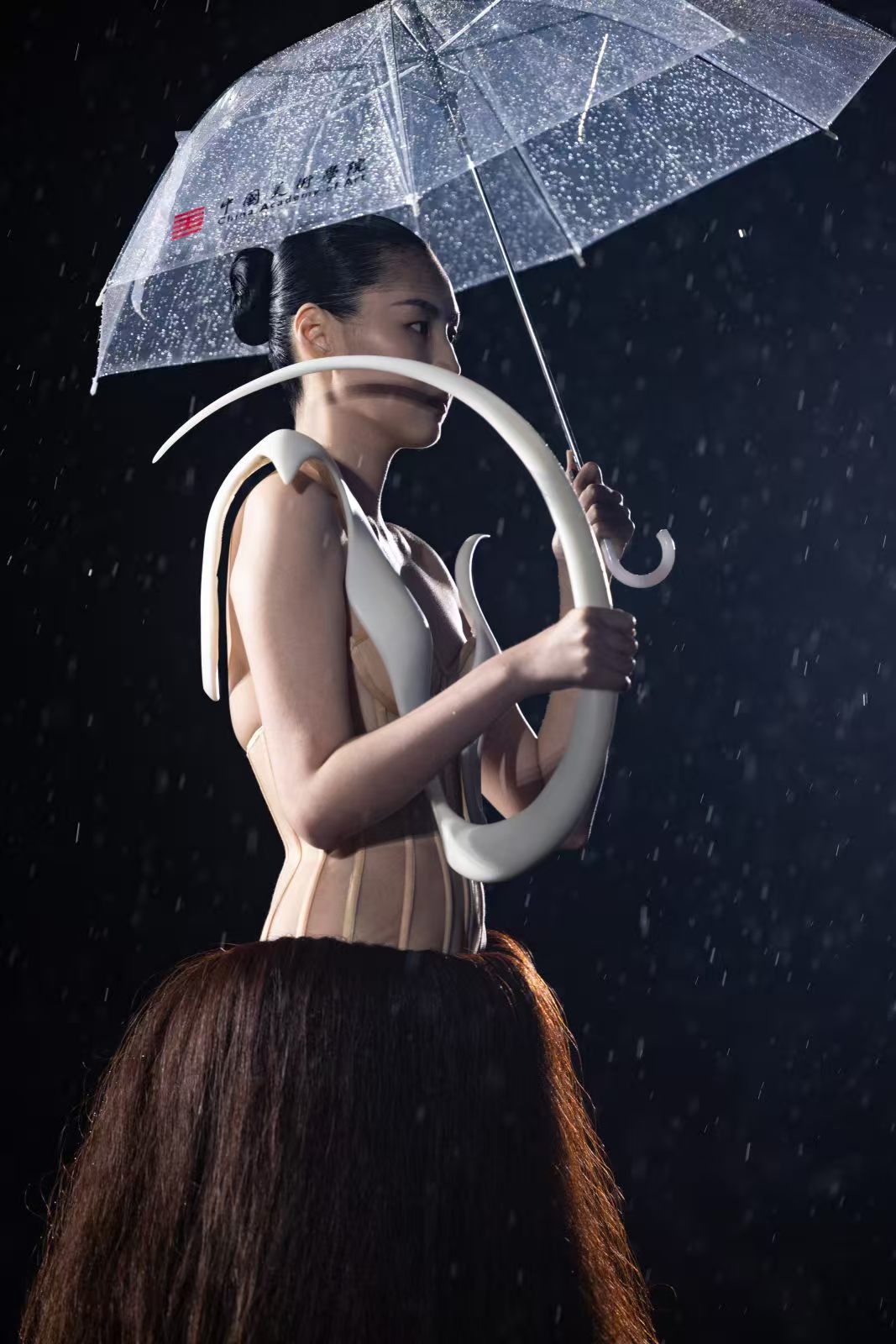 中国美术学院时尚设计学院自1928年图案科发端,始终以“东方文化活化”为使命,深耕“可持续发展”与“本土话语”两大领域。此次毕业作品中,从《红楼梦》经典名著提炼的东方美学符号,到生物材料的环保实践;从数字孪生技术实现的沉浸式体验,到传统工艺与现代设计的创新结合,无一不彰显学院“会通古今、履远致新”的精神内核,诠释中国美术学院“守正创新”的教育理念。