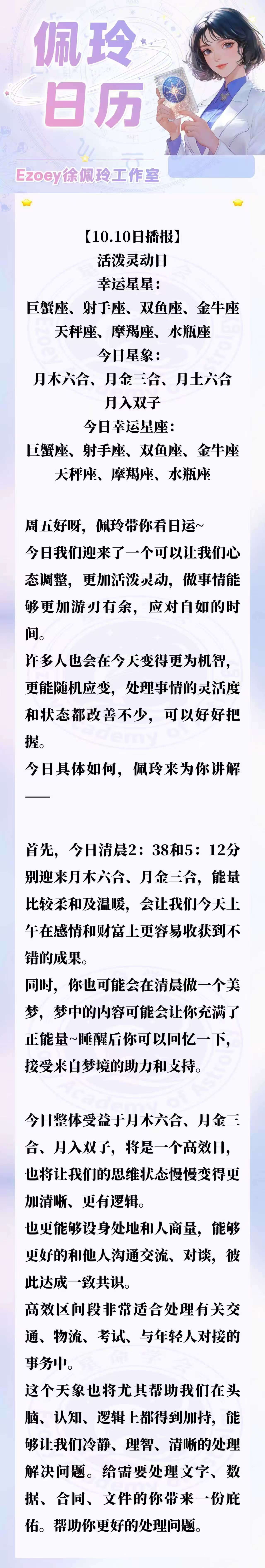 今日整体受益于月木六合、月金三合、月入双子,将是一个高效日,也将让我们的思维状态慢慢变得更加清晰、更有逻辑。