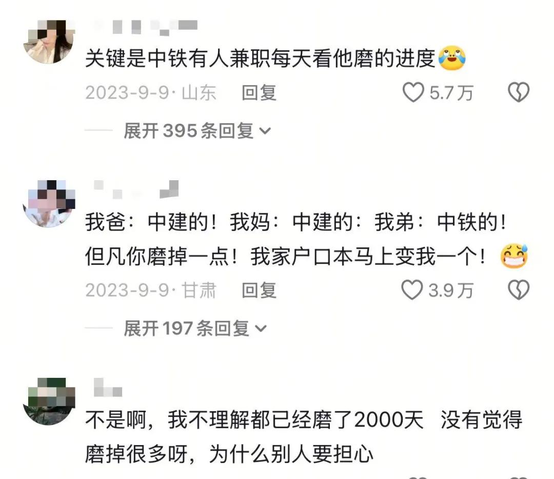 甚至有网友调侃:“如果他能把这钢筋磨成针,全国很多建筑的质量都值得怀疑”。