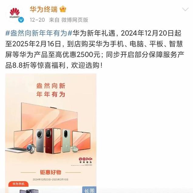 近日,华为突然在官网上架了“盎然向新年”限时促销活动,活动时间持续差不多2个月,直到2025年2月16日才结束。