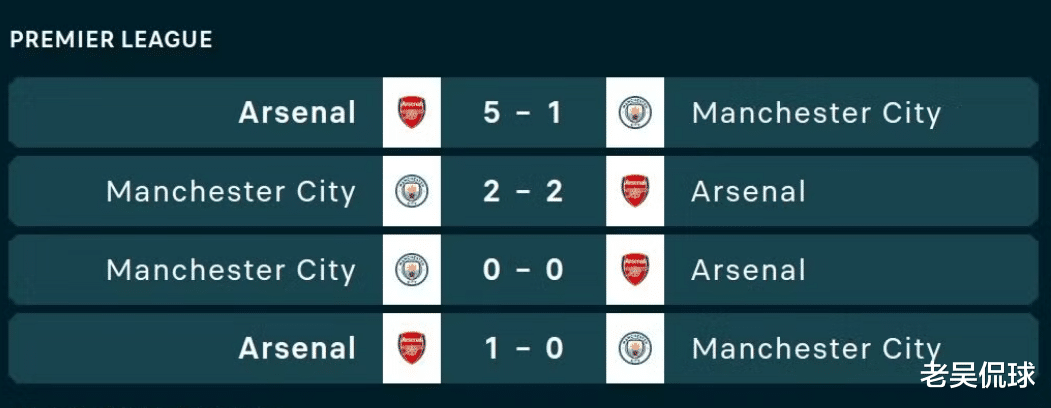 从2023/24赛季的季前社区盾杯战平曼城开始,阿森纳终结了联赛对阵曼城12连败的耻辱记录,过去的两个赛季,他们在联赛中4战曼城2胜2平保持不败,早已将过去被蓝月军团凌驾的恐惧转化为了争冠的雄心!