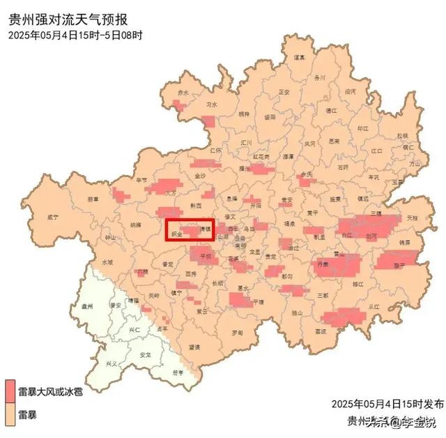 当天上午,除贵州省气象台发布了覆盖全省多地的雷暴、大风或冰雹预警外,中央气象台也发布了暴雨蓝色预警,指出贵州大部将出现雷暴天气,其中贵州中部地区伴有短时强降水、大风甚至冰雹。