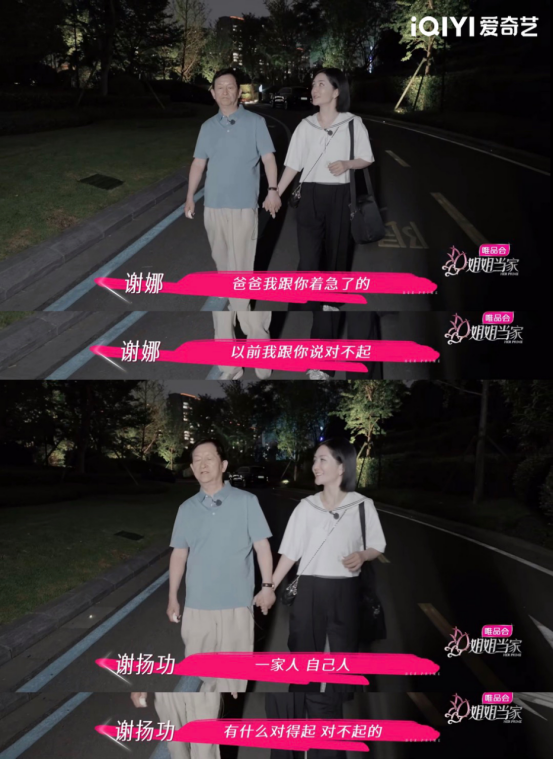 谢娜曾经因为过度关切父母健康而干涉他们的生活,也曾为此与父亲吵架冷战,如今终于找到心平气和的相处方式。父女俩牵手散步,谢娜为过去自己的急躁向父亲道歉,也表示看到父亲开始放下手机陪伴家人非常感动。虽然不知道能够坚持多久,但此刻能做到就已足够。而一家人互相尊重、彼此陪伴,就是稳稳的幸福。