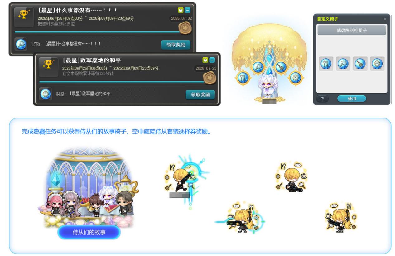 除了主线活动,V217还设计了不少偏向轻松和日常向的玩法。比如“贵宾桑拿”,花费一定抵用券即可在房间内静静挂机获取经验,非常适合练小号或刷副职业的玩家。“布鲁米的大扫除”则加入了一定趣味性,通过击杀怪物蓄能后触发清扫技能,不仅能赚经验,还有机会发现隐藏奖励。而“夏日教程”这一板块,虽然名义上是教学任务,但实则是官方为中低级玩家设计的节奏推进系统,帮助他们更快熟悉玩法、获取资源。几个看似零散的小活动,恰好补足了主活动之外的空白时间,也让各种类型的玩家都能从中找到参与感。
