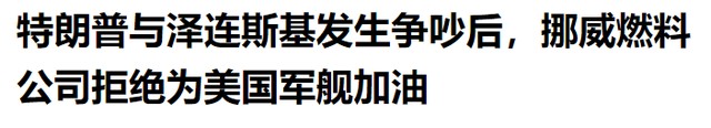 还有挪威的一家燃料公司,可能是直接表示自己不会再给美国的军舰加油。他们还夸泽连斯基,说美国背叛他,但他却保持了冷静,十分的克制镇定,根据相关资料显示,这家公司光去年一年,就给美国的船只提供了将近三百万升的燃料。